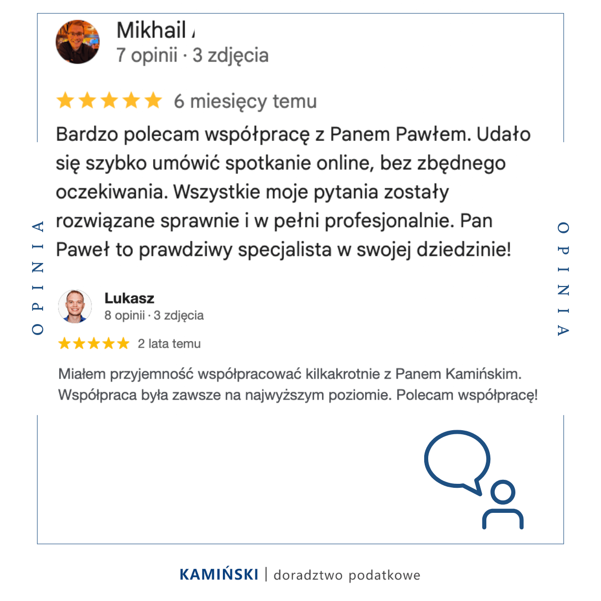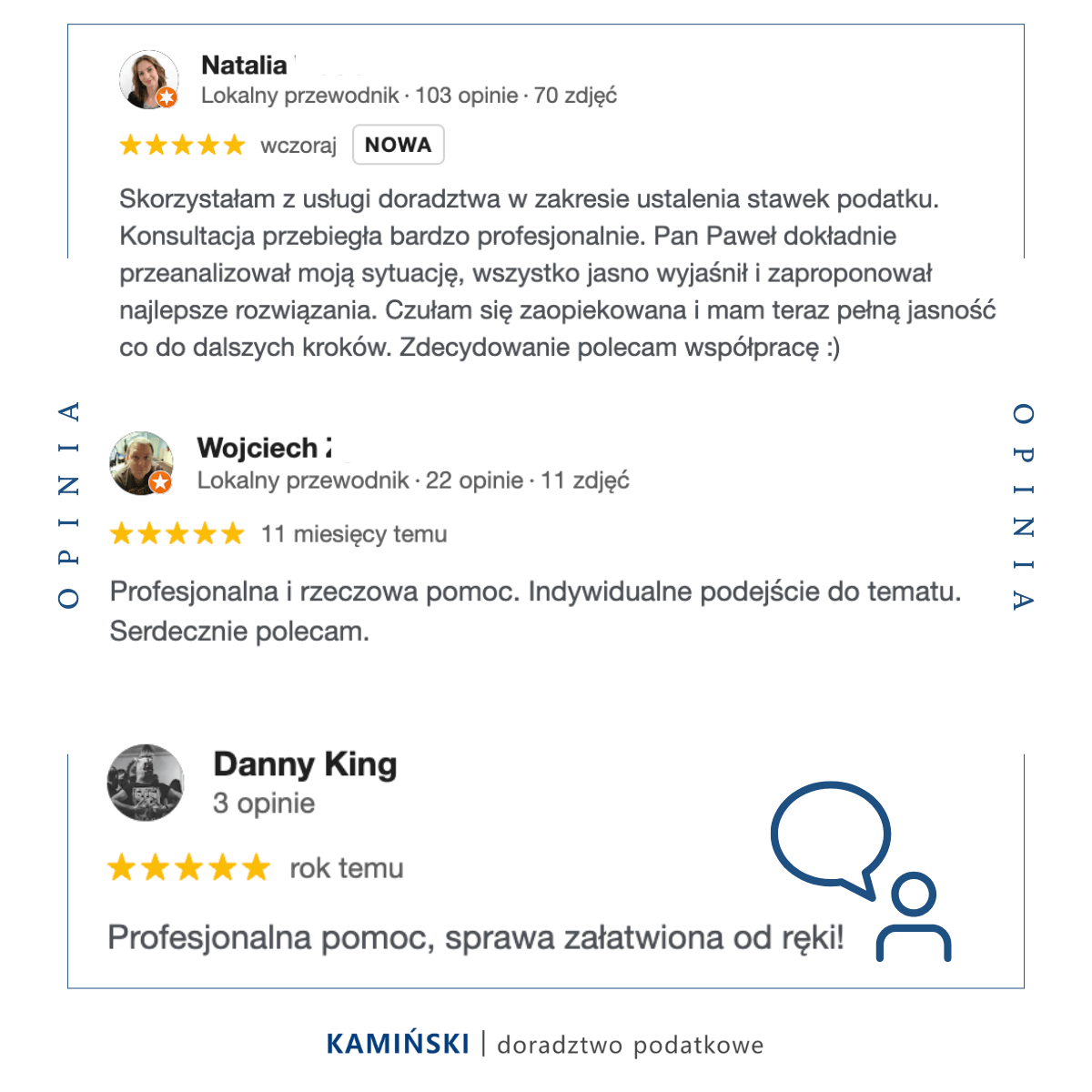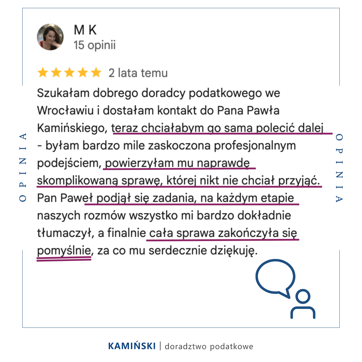 Twojego problemu podatkowego. Dokumenty prześlij na adres: biuro@kaminski-tax.pl. W zależności od